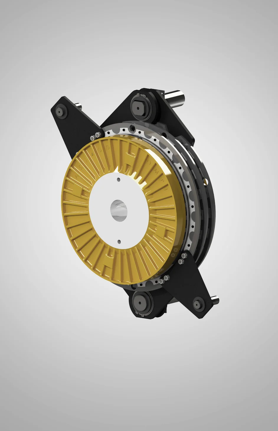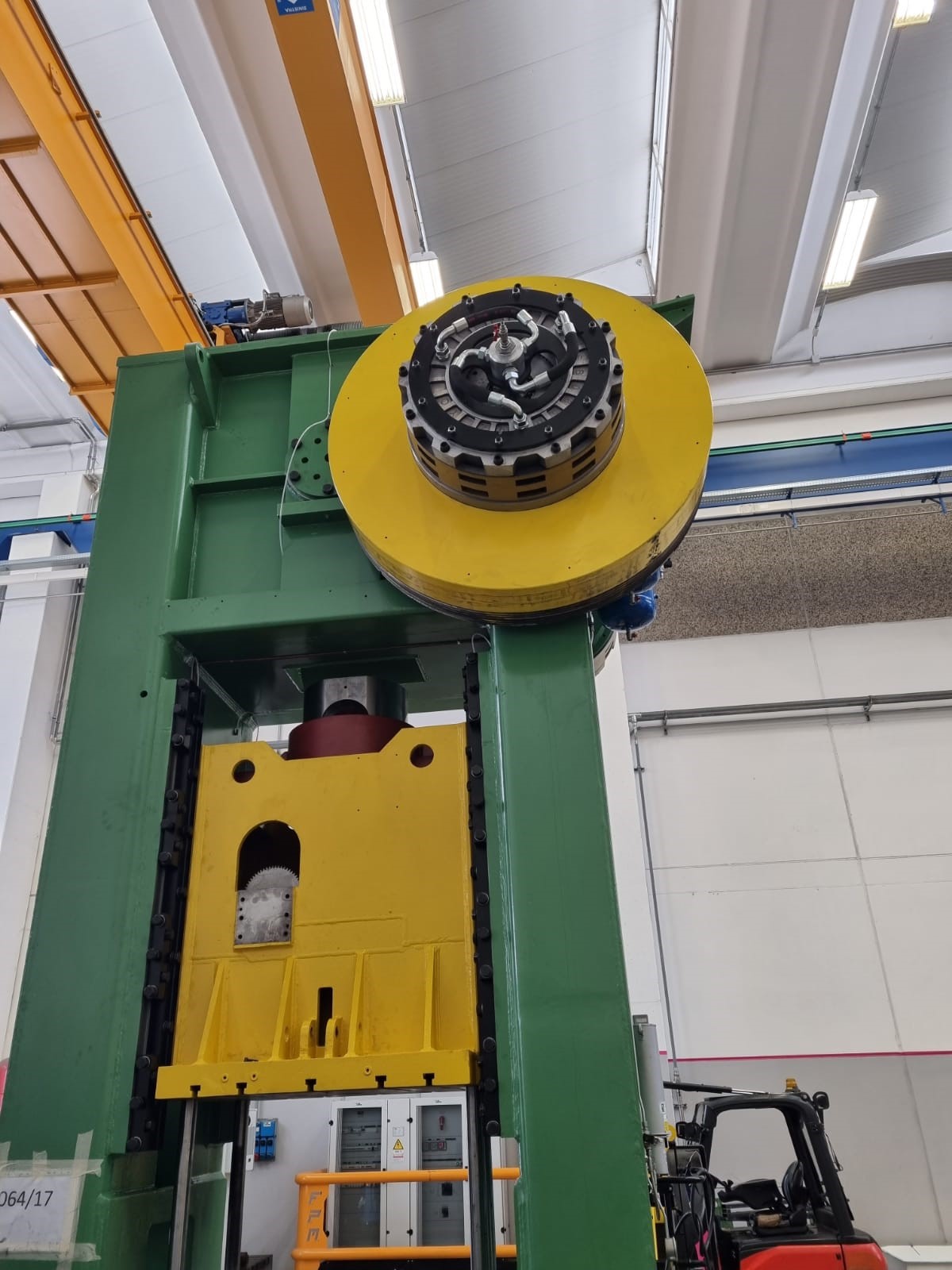 OMPI最新设计制造的离合制动器,应用于压力机的驱动系统,配备完整的飞轮和行星减速机构及旋转接头。所有OMPI产品出货前都经过严格测试,符合质量标准。
